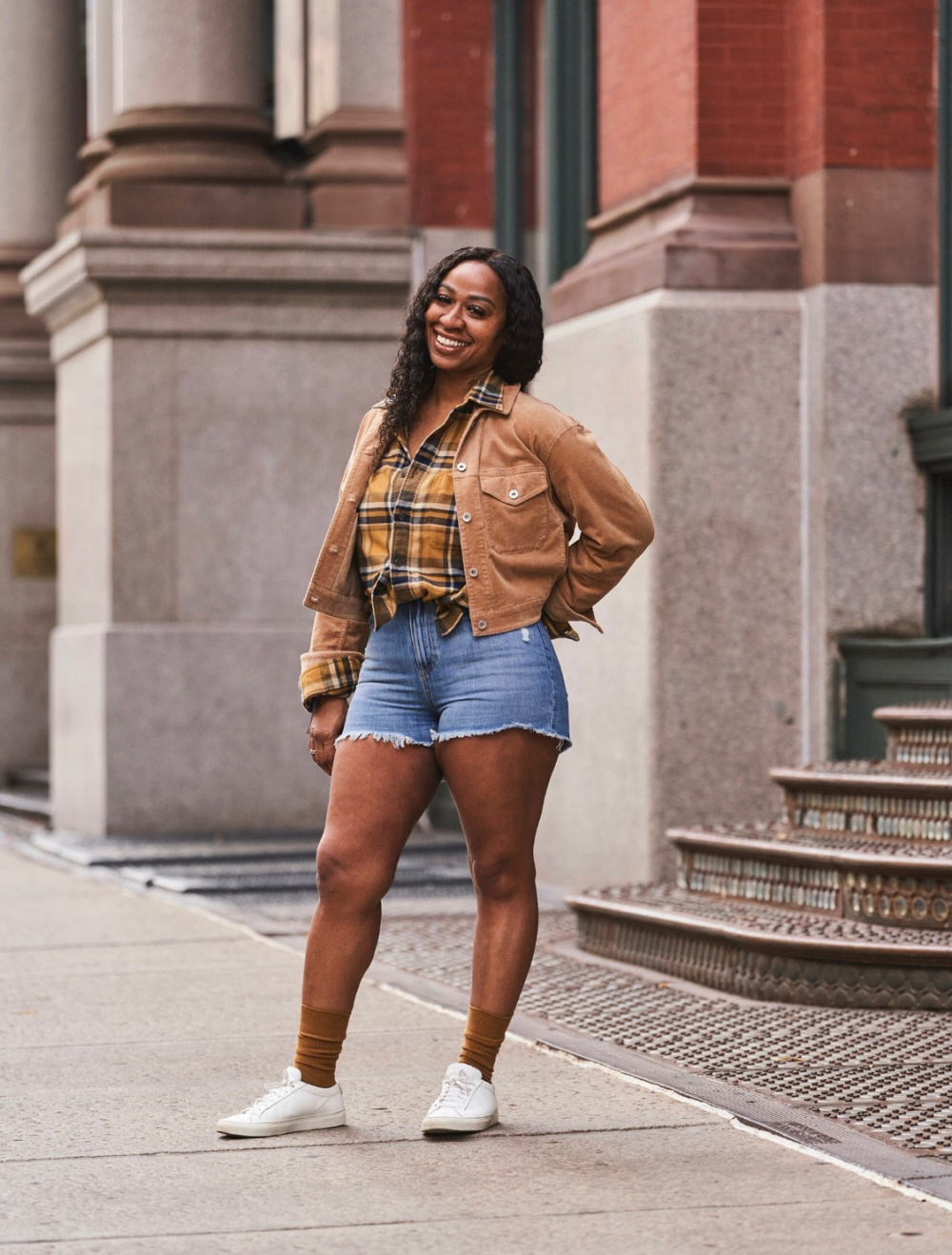 Outfit Ideas Of Flannel Checked Long Sleeve Shirt High Rise Denim Shorts Uniqlo Us